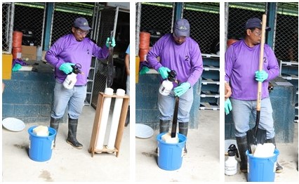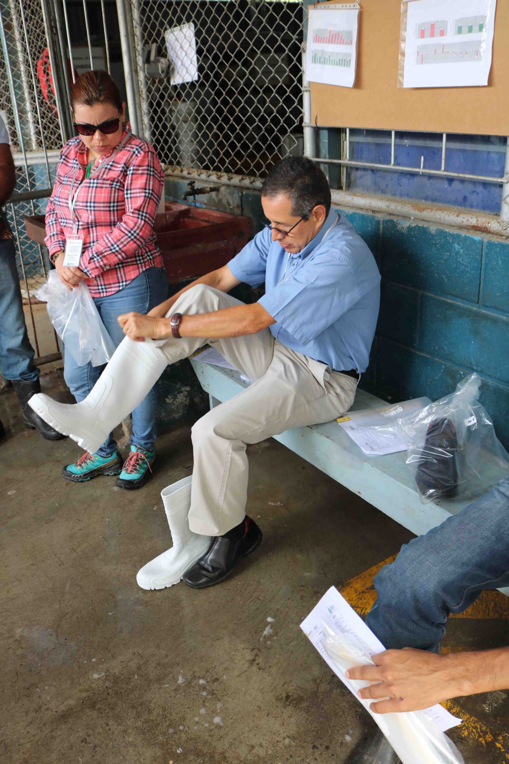 Instale pediluvios en las fincas para la desinfección del calzado.