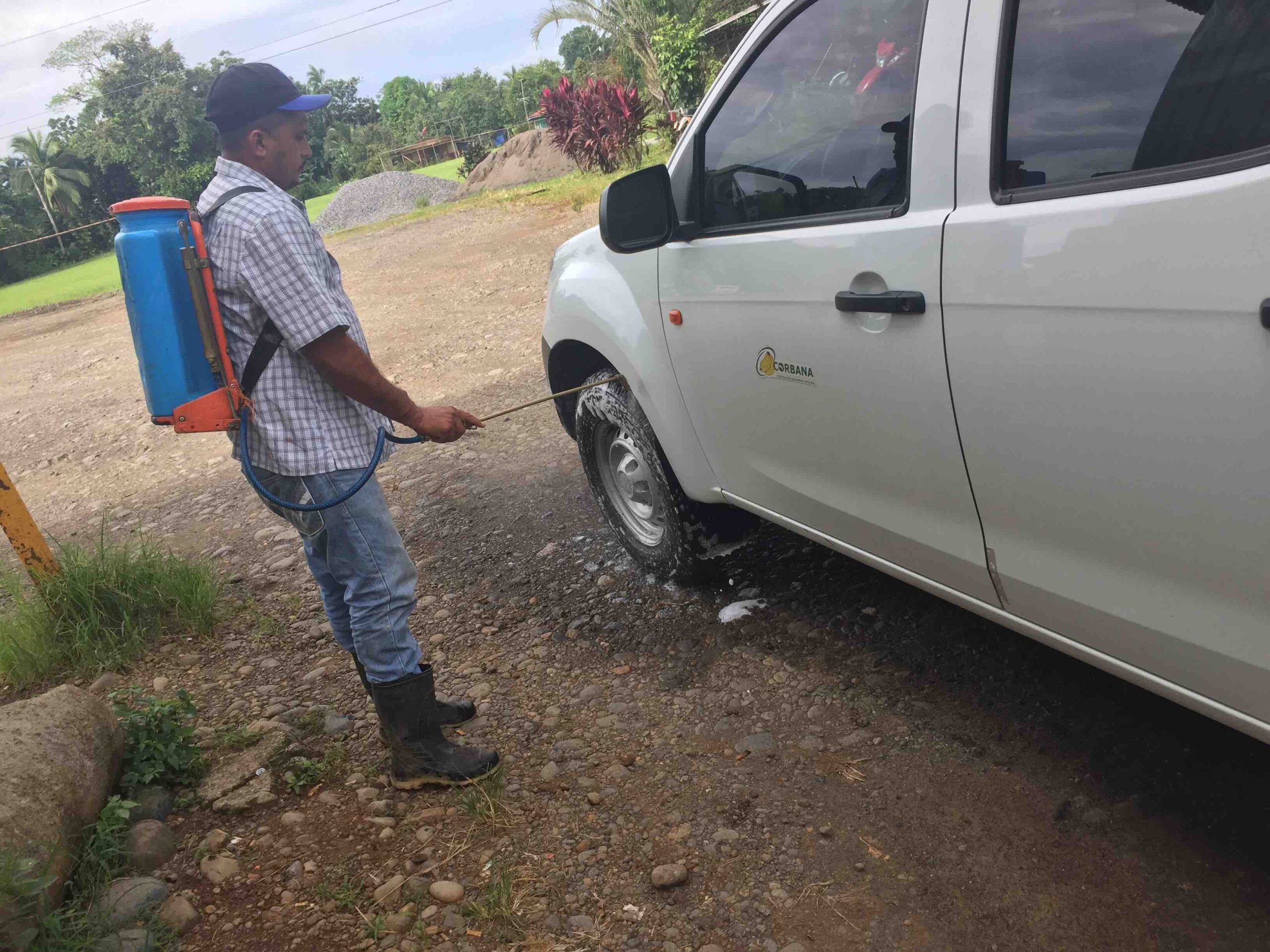Desinfecte vehículos y maquinaria que ingresan a las plantaciones.