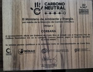 El Gobierno de Costa Rica reconoce los esfuerzos de CORBANA en la reducción de emisiones de gases efecto invernadero al cumplir con el Programa País de Carbono Neutralidad 2.0, según el Decreto Ejecutivo No 41122- MINAE.