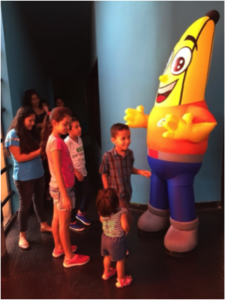 Nana Rosa se encargó de dar un recorrido por la historia del banano en Costa Rica, desde su llegada al continente proveniente de las Islas Canarias hasta las 128 millones de cajas que se comercializan anualmente, mientras los niños aprendían del proceso de producción y exportación de esta deliciosa fruta.